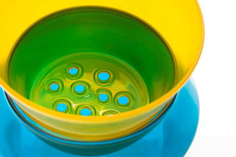 In response to Cool Hunting brief, which invited creation with color, the Albers vase, a colorful version of Splash (see Accessories), blends the typologies of flower frog and vase. The two-part vase creates a third color where the pieces nest. Inspired by Interaction of Color, Joseph Albers’ experiments in studying and teaching the subject, the vase is handcrafted of borosilicate glass, notoriously difficult to color.